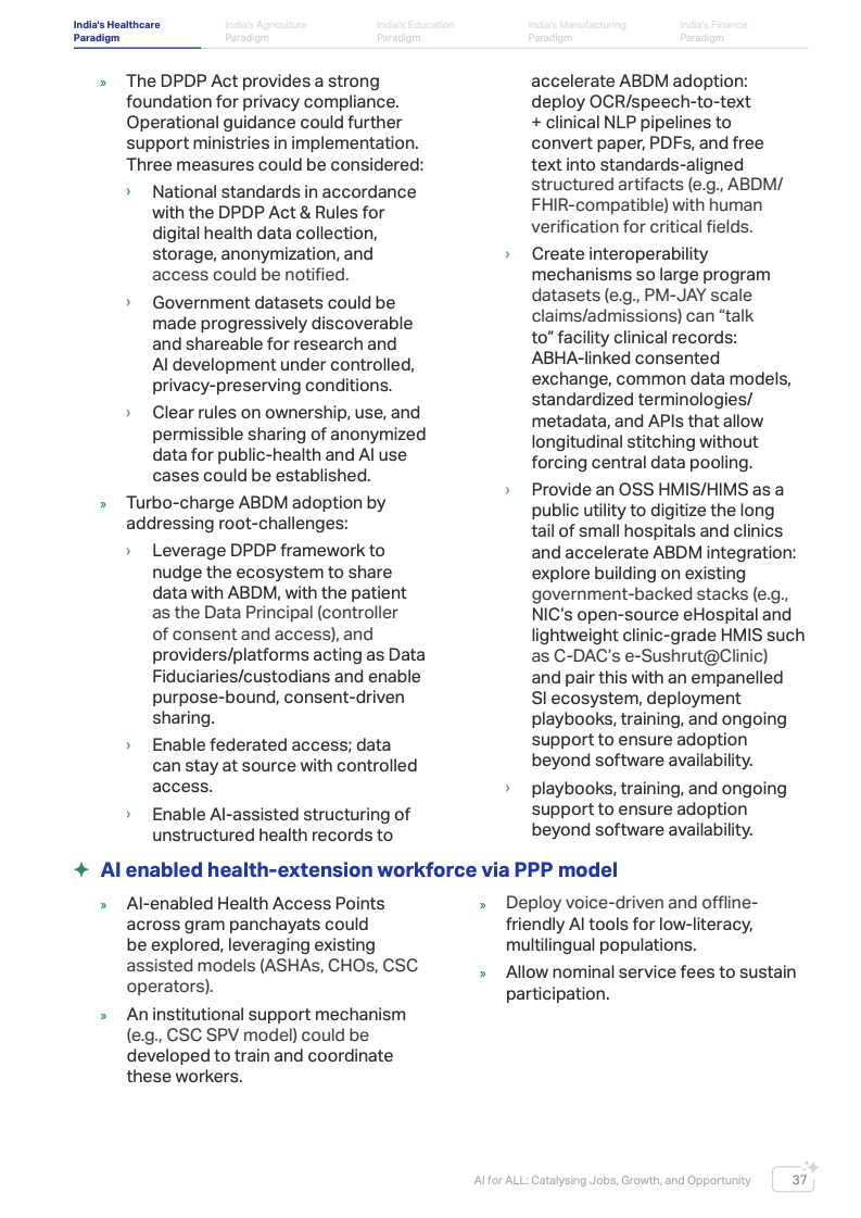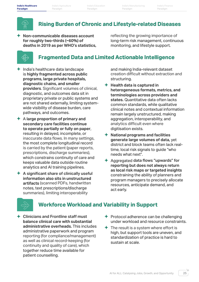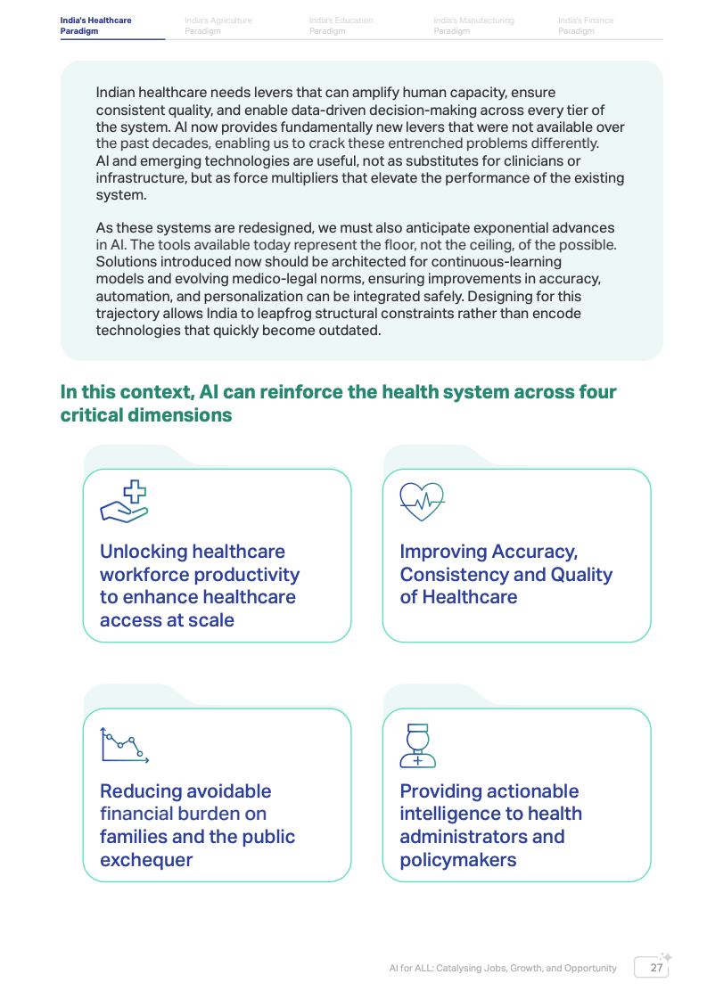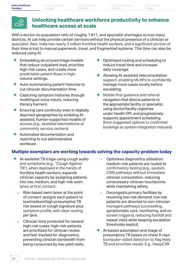 印度在AI发展中具备显著基础优势。数据显示,全球约16%的AI人才集中在印度,使其成为全球最大且增长最快的AI应用市场之一。同时,印度通过数字公共基础设施体系,在身份识别、支付系统与公共服务数字化方面实现了人口级规模应用,这为AI在农业、医疗、教育和金融等关键领域落地提供了重要基础。