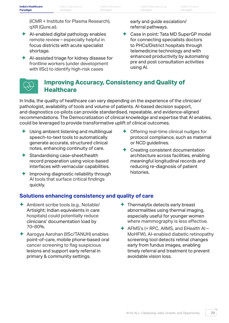 AI在公共医疗中的潜在价值体现在四个方面。第一,通过AI辅助诊断、远程医疗和语音记录系统,提高医生生产率并扩大医疗服务覆盖。第二,通过标准化诊疗建议和影像识别,提高医疗质量一致性。第三,通过减少重复检查与远程随访,降低家庭医疗支出。第四,通过整合医疗数据形成风险监测与决策支持体系,提高公共卫生治理能力。