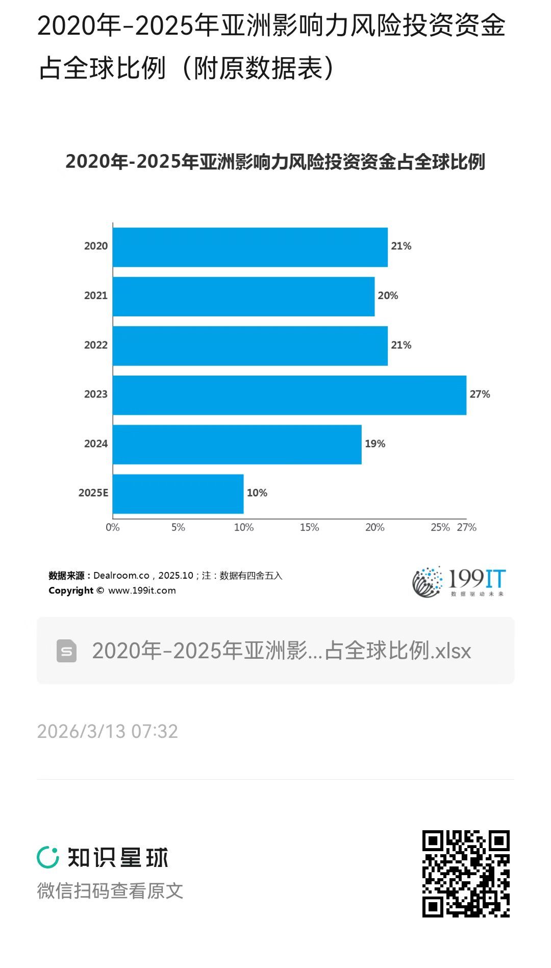 2020年-2025年亚洲影响力风险投资资金占全球比例(附原数据表) ​​​