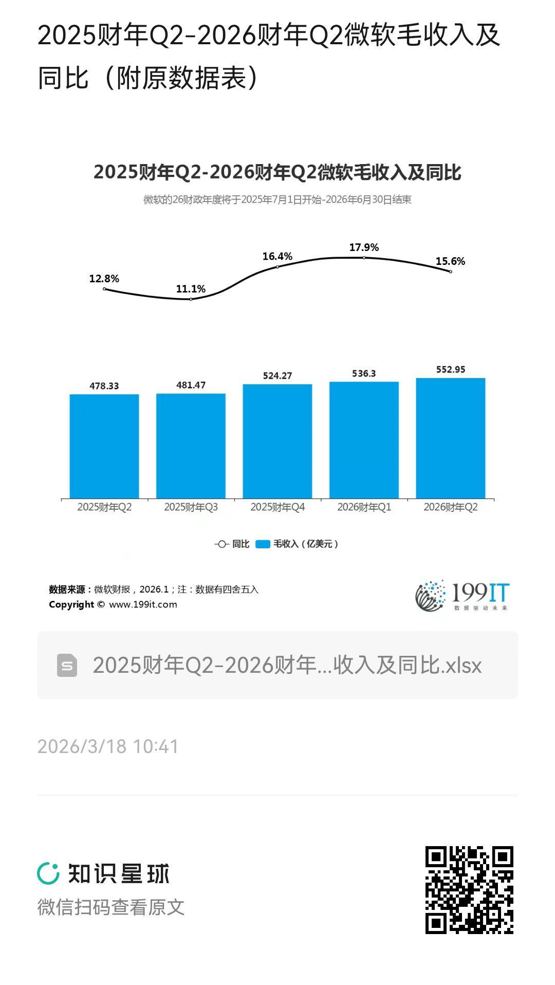- 2023财年Q2-2024财年Q2微软毛收入及同比(附原数据表)