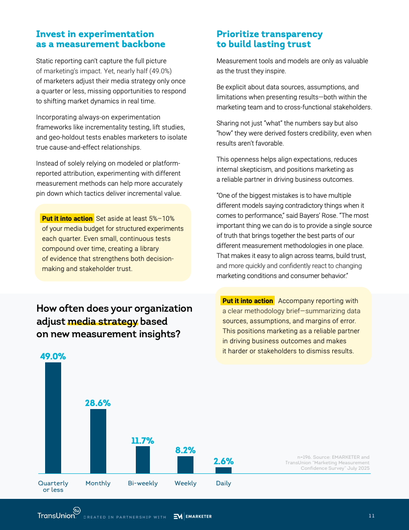 报告建议将5%-10%预算用于持续实验,以构建因果证据体系并强化内部信任基础。