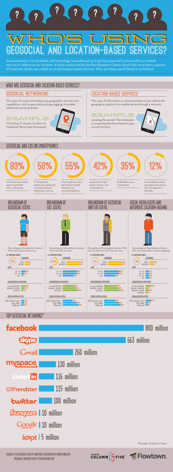 基于地理位置的社交网络是2010年的五大趋势之一。现在几乎所有开发者做个应用都要加入地理位置服务。移动和社交应用都要增强位置,而不是基于位置。你可以用4sq,Gowalla,Facebook Places签到,而类似Yelp的应用则可以识别你周围的位置来找到附近有什么服务。知道都是些谁在用LBS么?来看一下这张图吧。