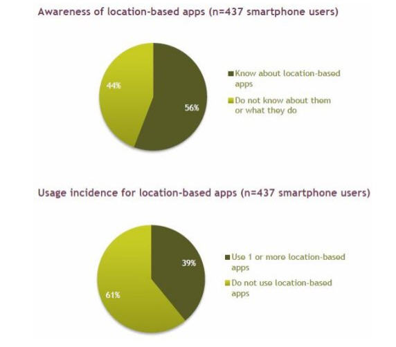 实际上,LBS的世界标杆——Foursquare情况还不是那么悲观,Foursquare当前用户数量约为1000万。ExactTarget的数据表明,至少有28%的智能手机用户使用LBS。Whitehorse的数据表明,56%的人知道LBS,在被调查的人中39%使用过LBS。艾瑞咨询的《2010-2011年中国位置签到服务行业研究报告》也表明,2013年位置签到服务用户将达到8100万。