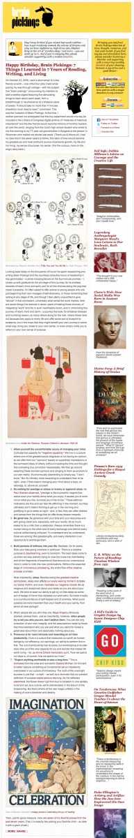 Brain Pickings是一个完全非商业性的网站,主要收录书籍、艺术、科学、影像等兼具永久性又合时宜的内容,以书摘的形式呈现给读者。我挑选这封邮件的原因,不仅仅是它好看,还因为它的内容和读者角色非常契合。这封邮件阅读群体可能是热爱古典文学或流行文化或两者兼而有之的这部分人,而这封邮件做到了这一点,塞满邮件的有趣的信息可以牢牢抓住用户的眼球。
