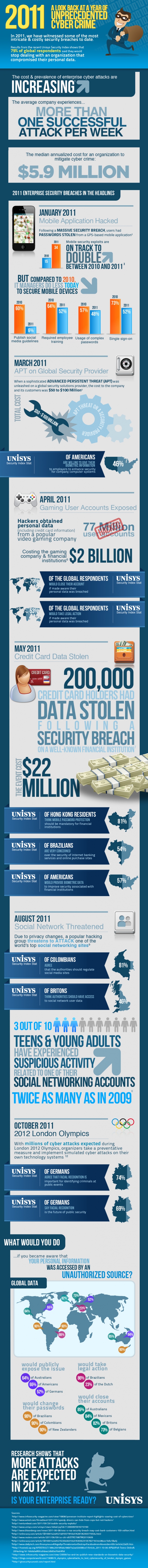 unisys:2011年网络安全形势不妙–数据信息视图 2011年,安全公司说网络安全问题更严重了。 来自unisys公司的调查显示,79%的受访者说如果他们的个人数据遭到忽视,他们会不与这样的公司合作。 平均一周,一个公司要遭受两次安全攻击事件。公司花在减缓安全损失的平均年支出高达590万美元 2011年的重大安全事件,包括移动APP被黑、游戏帐号、信用卡、社交网络等,涉及方方面面 更多阅读:信息图:Facebook第三方应用懂你多少abine:揭秘在线监测Informatica Corporation:个人数据使用,信任是一切腾讯大讲堂:揭秘:黑产也“AI”,我们怎么办?Trend Micro:社交网络如何导致你的帐号被盗McAfee:针对手机的攻击和恶意软件大增Posterous:社交网络与隐私研究Pew:3成美国人在线分享自己的住址信息eMarketer:90%的中国网民安装了安全软件TRUSTe:66%的智能手机用户担忧隐私安全CSDN:看看技术宅都爱用什么密码?用什么邮箱?韩国80%的恶性病毒程序盗取游戏账号抢劫银行,电脑比枪好使NCC:全球黑客攻击来源,中国和美国是全球两大黑客事件发源地Atlas VPN:2021年全球76%的公司遭遇因技术问题导致的业务中断