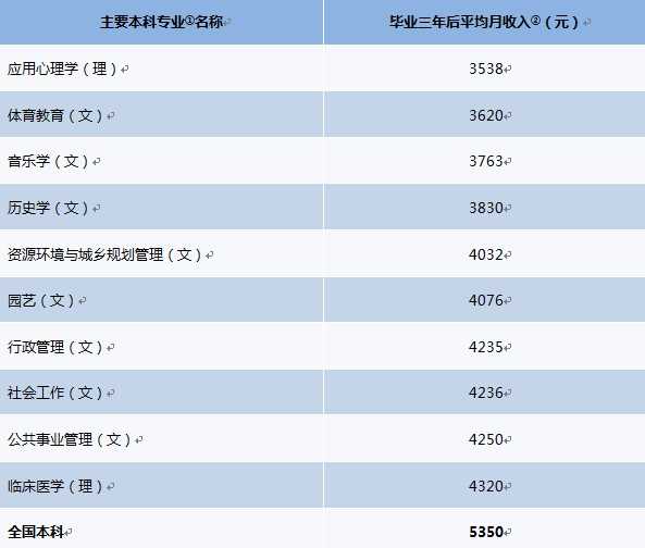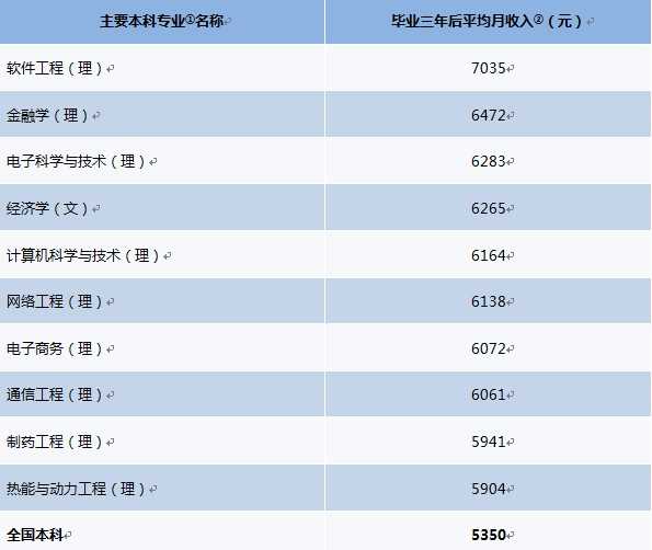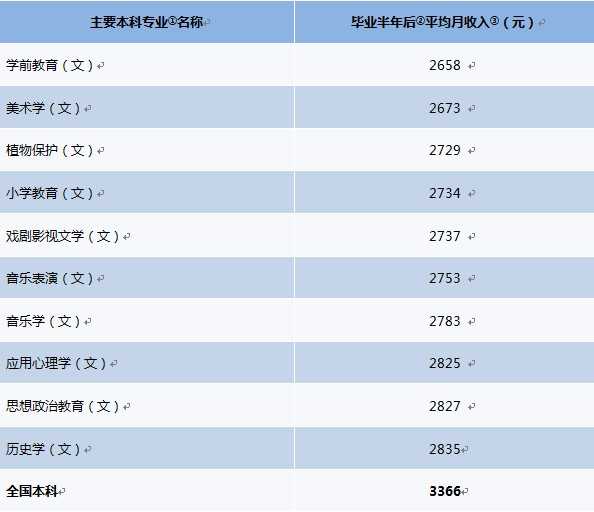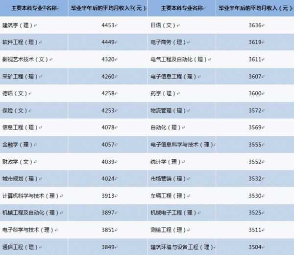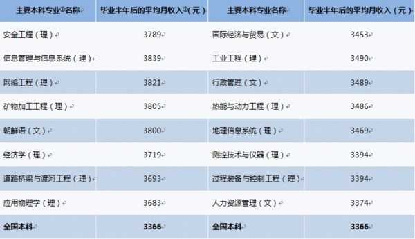 ③月收入:指工资、奖金、业绩提成、现金福利补贴等所有的月度现金收入。本表格涉及的部分专业文理兼收,统计数据仅以表内备注为准。