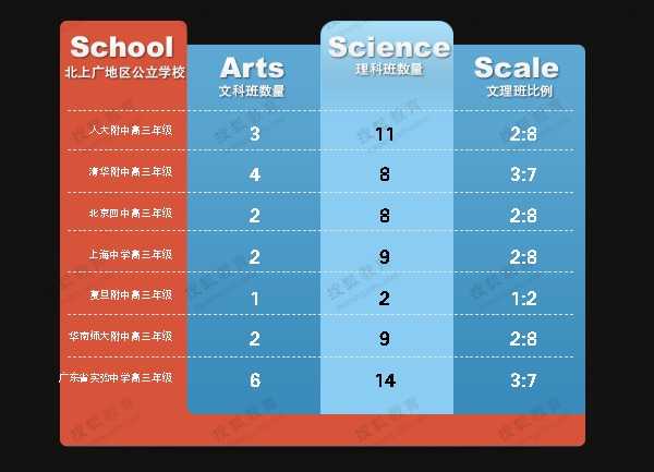 一、 北上广地区公办学校文理科班型设置调查:理多文少成普遍现象