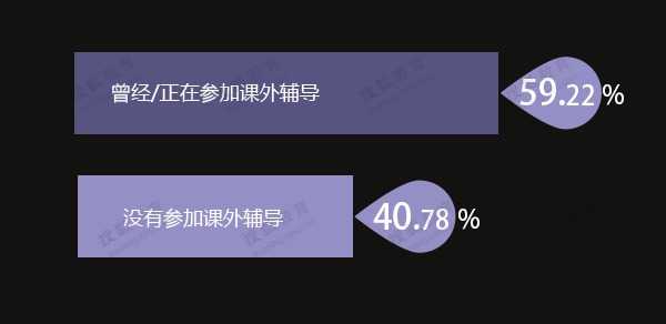 随着中高考升学竞争的不断加剧,初、高中阶段学生普遍存在着学业自我加码的情况,除了完成在学校内的课程学习,在课堂上“学不透”“吃不饱”的部分还需要通过其他形式的补习以得到提高。在《2013年理科基础教育白皮书调查问卷》的投票结果中,有59.22%的人群表示“曾经或正在参加课外辅导“,40.78%的人群否认接受过课外辅导。由此可见,课外辅导已然成为学生提高学科成绩的首选方式。