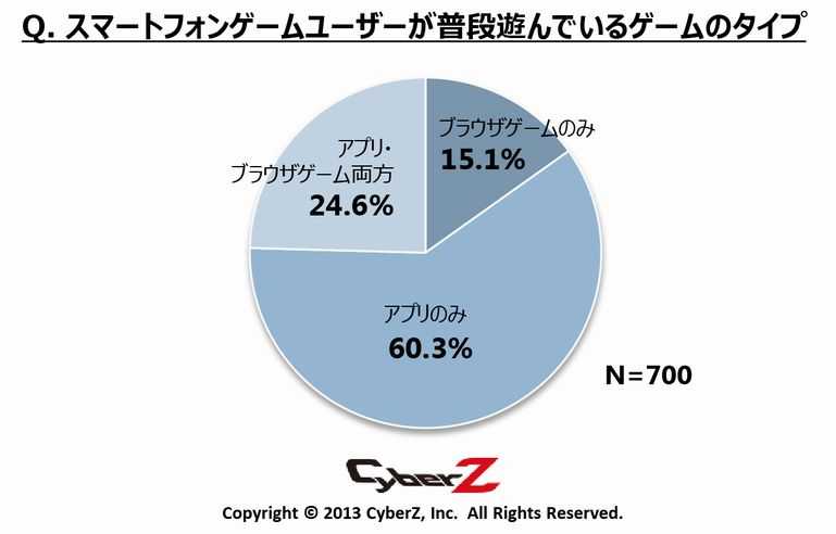 智能机游戏分为在App Store、Google Play下载的“app游戏”,和可在Ameba、GREE、Mobage上通过浏览器玩的“网页游戏”。这次调查对这两种游戏玩家的倾向进行了调查。