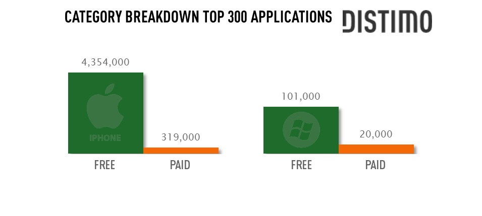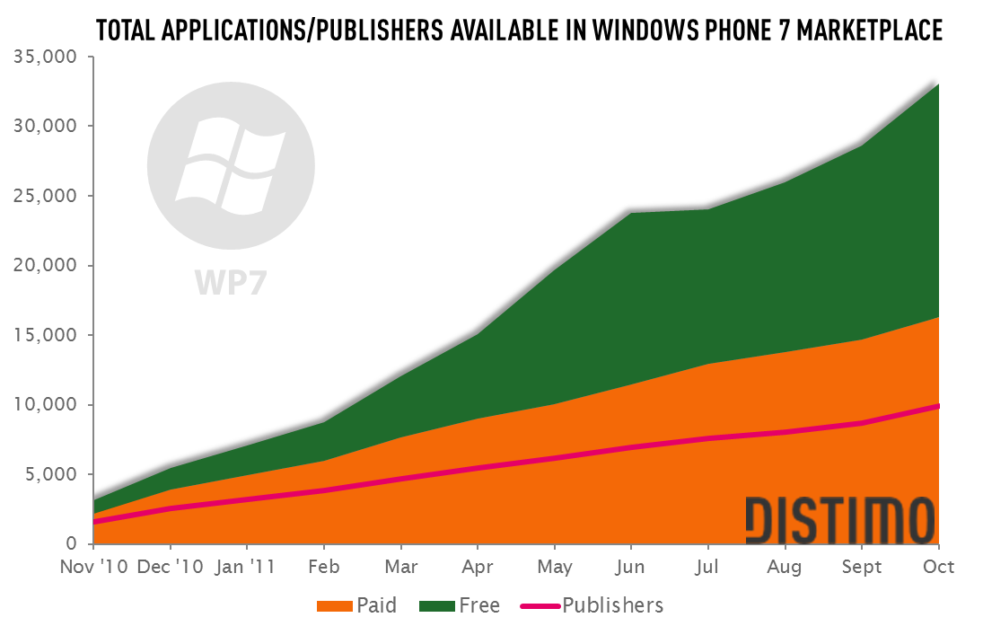 Distimo最新的报告回顾了Windows Phone7市场过去一年的表现,下面我们来看看关键的数据: