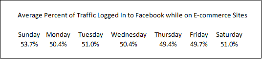 电子商务网站应该考虑好好利用Facebook的数据来个性化它们的站点,Sociable Labs的研究显示50%的电子商务网站用户会使用Facebook帐号登录,而不同类型的用户中,该比例从40%到60%不等。使用Facebook社交插件,电子商务网站可以利用Facebook的数据显示用户的好友买了什么、分享了什么,什么产品可能是他们喜欢的,以及他们可能会希望邀请哪些好友。