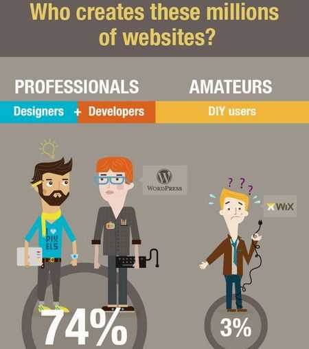 跟据因特网监测公司“网器”(Netcraft)的统计显示,在整个Web开发过程中,较为专业的设计师/开发者占到了74%,而业余的开发者/设计师只占到了3%。