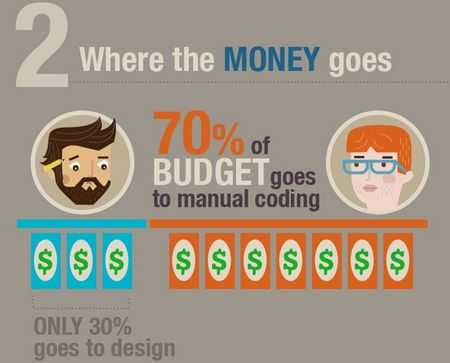 2. 用于网站设计的钱都花在哪儿了?据统计,人工编码占了70%的财政预算,而真正用在Web设计上的只有3%。