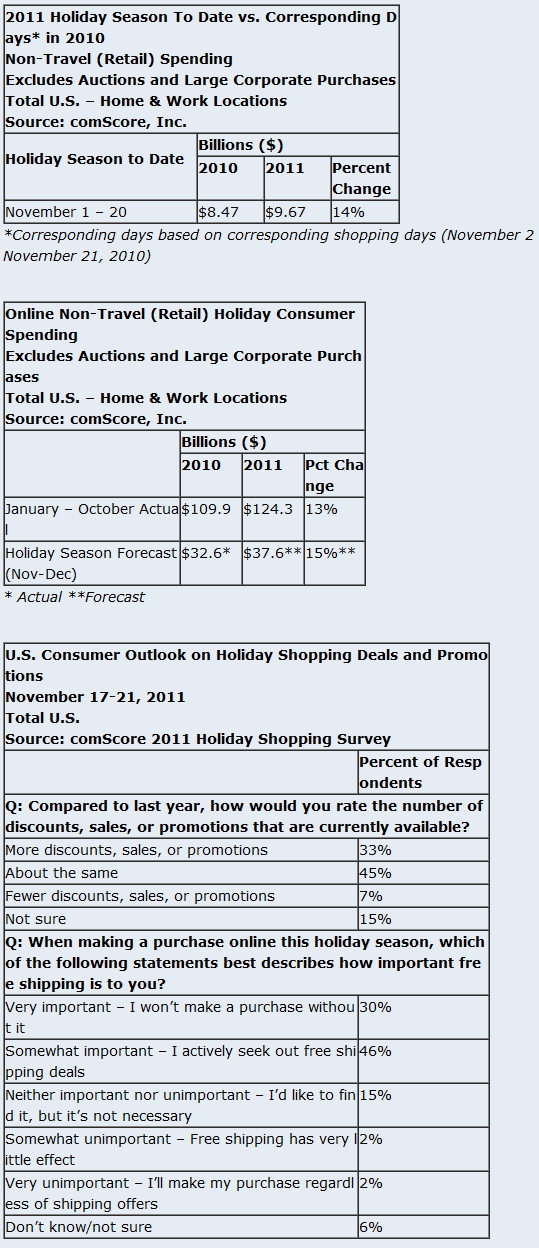 2011年的感恩节周末,美国消费者将纷纷走进各大商店或在网上搜索打折商品,因此线上和线下零售商都开始为此做好充分准备,这也从侧面刺激了消费者在线购物的积极性。