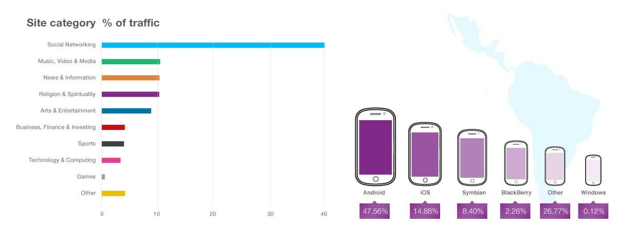 • 在南美市场里,在移动设备的类型和出版商类别份额上我们看到一些与全球市场较大的不同。