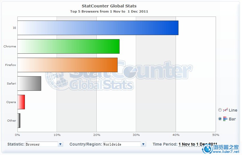 当然,微软的 IE 浏览器仍在全球市场中占据头名地位,该浏览器上个月的全球市场份额达到 40.63%,在美国市场的份额甚至高达 50.66%,但尽管如此,相关的数据仍表明,IE 和火狐浏览器的份额都有所下降。