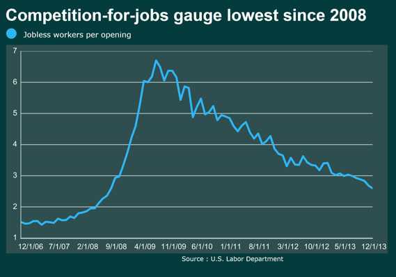 (求职者对就业岗位的竞争度创下自2008年的最低水平)