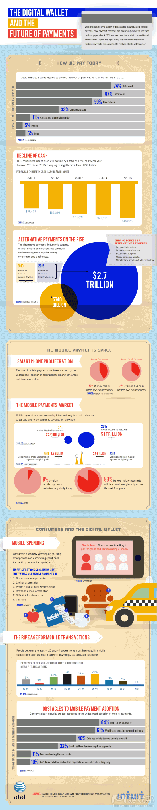 Intuit最近发布的信息图表显示,手机支付方式发展迅速,将在2015年成为美国主流支付手段。