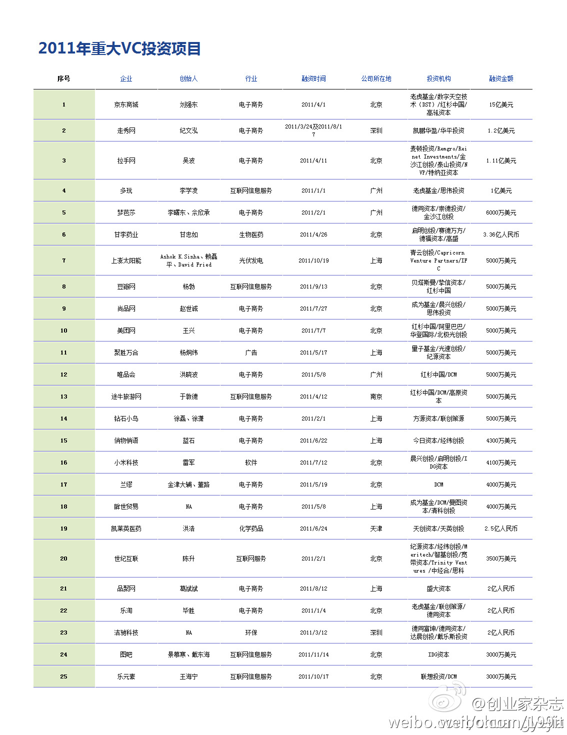 福布斯中文网:2011年中国重大VC投资项目图表 更多阅读:福布斯中文网:全球亿万富豪俱乐部正在“扩招”–信息图福布斯中文网:数据解读2013年日本智能手机游戏市场福布斯中文网:碰上坏老板对职业发展或许是件好事?福布斯中文网:社交媒体的内生传播力行将消亡福布斯中文网:理解新媒体:内容何时为王福布斯中文网:社交媒体会对购物产生影响吗?福布斯中文网:走群众路线–社交媒体为超模经济复兴推波助澜福布斯中文网:研究显示谦虚的CEO对公司最有利福布斯中文网:2014年网络营销的7大主导趋势Casey Quirk:未来中国资产管理行业的领航者2017年美国基金行业年鉴IDC:2025年Q1全球打印外设出货量同比增长2.7%24年全球三大终端应用NANDFlash单机平均搭载容量同比(附原数据表) Nielsen:精明的购物者利用连接在奔走中获得买卖信息微软广告:调查发现68%的电脑用户在同一时间使用多种设备处理多个任务