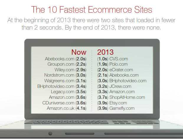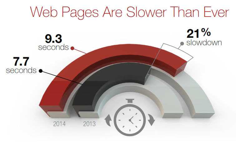 Radware在最新的调查报告中指出:500强零售网站不仅页面日益增大,而且加载速度也比以往变慢,越来越不能满足在线消费者的需求。500强电商网站主页的平均加载时间中位数为9.3秒,仅一年内就增加了21%,50%的电商网站加载时间则为10秒甚至更长。该报告还指出,在排名前100的电商网站中,每一页面的加载时间中位数为10秒,略高于去年同期的8.2秒。在早期的研究中显示,一个典型的互联网用户能够接受的最大页面加载时间阈值为10秒,遗憾的是排名前100位的零售商网站当中有半数没有达到这一要求。