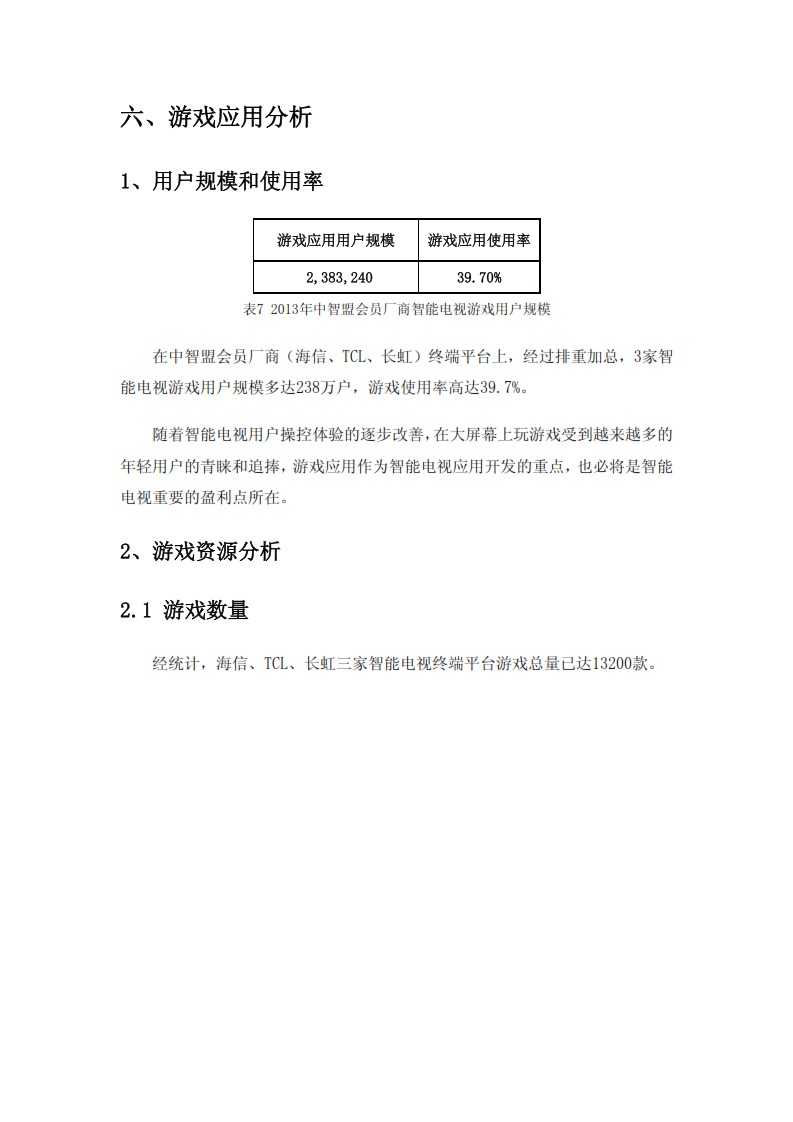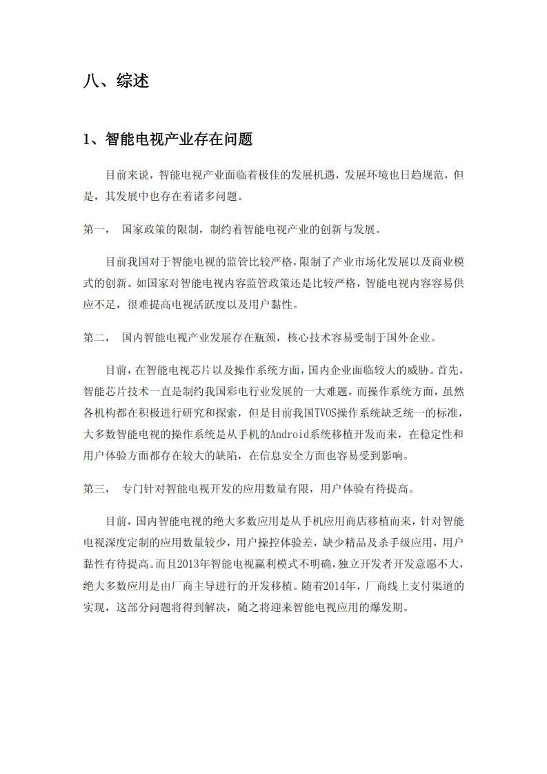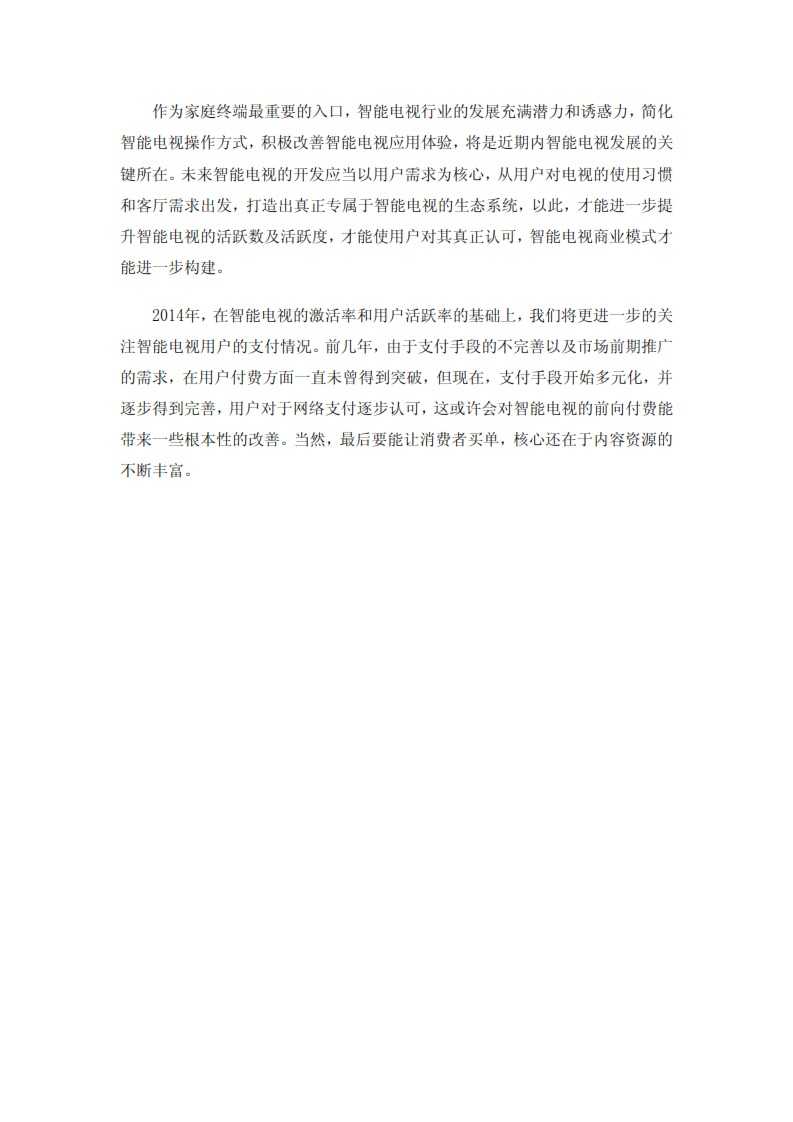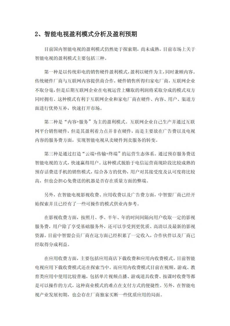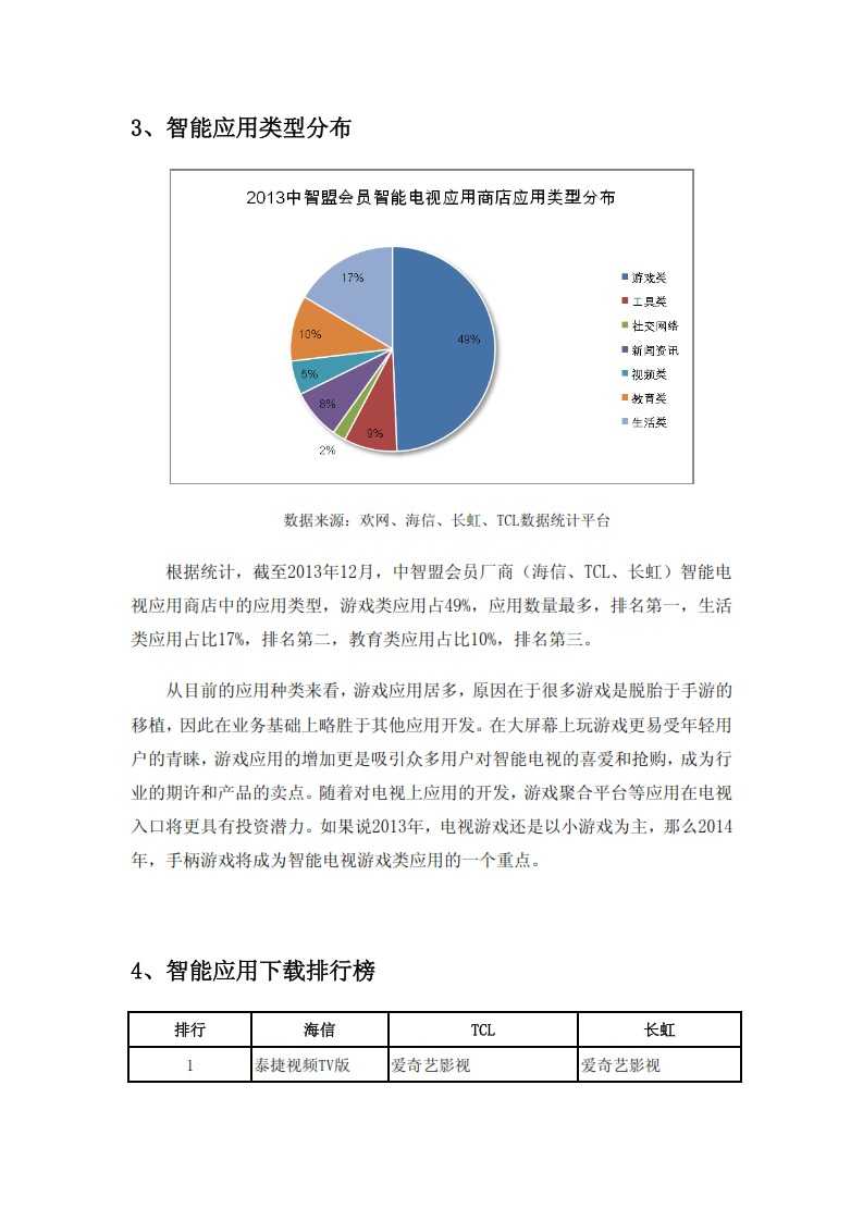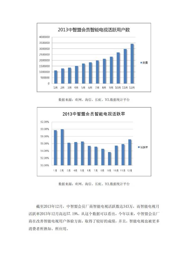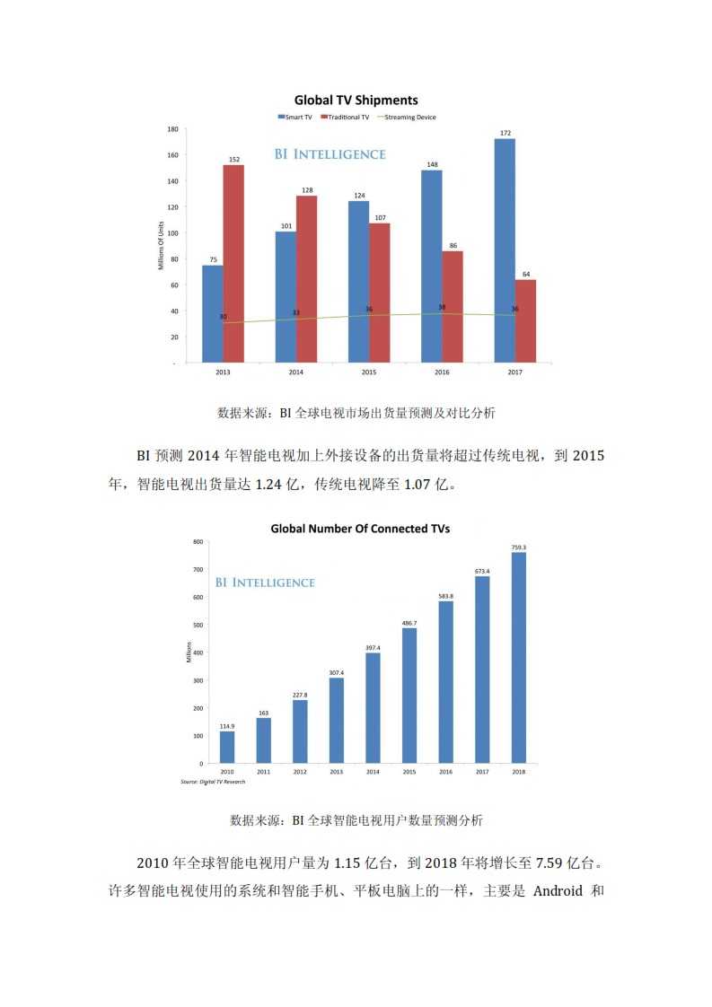 中智盟:2013年中国智能电视产业发展研究 更多阅读:中智盟:OTT智能电视行业广告标准白皮书中怡康:2014年1-4月中国智能电视渗透率达58.7%ZDC:2014年2月中国智能电视市场分析ZDC:2014年1月中国智能电视市场研究分析尼尔森:中国智能电视用户全样本收视行为及OTT广告价值研究酷鹅用户研究院:2018年中国智能电视用户洞察报告NDP:2012年Q2 中国40%的电视机出货带联网功能艺恩咨询:2014中国电影市场影响力研究志精科技&奥维咨询:2014年中国智能大屏媒介数据报告–智能电视篇Hub:2023年美国联网家庭报告Google智能电视设计规范J.D. Power:2014年中国汽车售后服务满意度研究迈点网:2014年7月中国酒店业高端品牌发展研究J.D. Power:2014年中国新车购买意向研究中国城市消费者研究:网络化生活方式正在形成