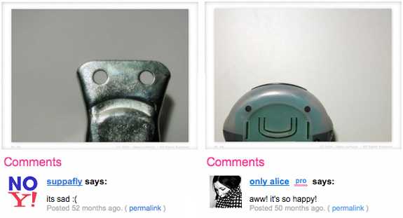 观察下面的两个简单物体。它们在表达情绪吗?作为静态的物体,它们表达的任何情绪都不会随着时间的推移而改变。如果人格的主要维度是友好性和支配性,你觉得哪个物体更友好?哪个更具有支配性?看看人们在照片下面留下的评论。快乐与友好的神态、愉悦和趋近行为相关,而悲伤则与不友好、痛苦和回避行为相关。