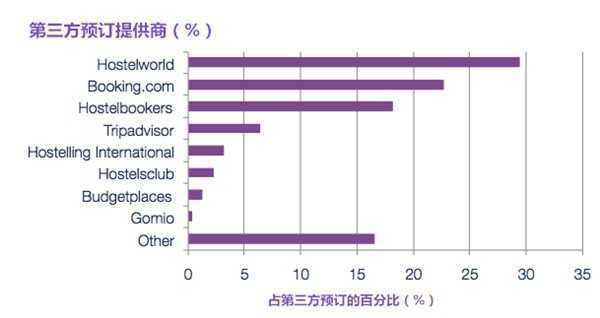 青年安全旅游住宿协会(STAY WYSE Association)的最新研究表明,现在有29%的旅舍预订来自于第三方网站。