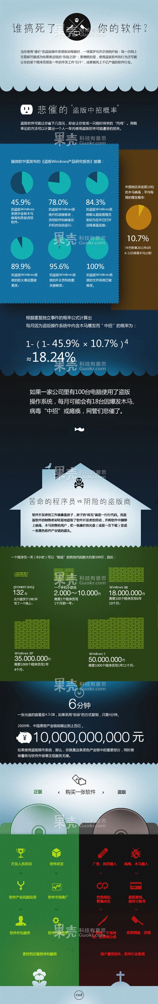 微软中国:谁搞死了你的软件?-数据信息图表 谁搞死了你的软件?讽刺的是,恰恰是软件本身。大量的软件在未得授权的情况下被使用,也即是我们常说的盗版。它们增加了每一个人的安全风险,并与黑客产业链紧密相连,让众多“程序猿”兄弟面临下岗的窘境。我们可能每个人暂时节省了一笔小钱,但对社会来说,亏大了。 via:果壳网 更多阅读:Sonatype:2020年软件供应链状况报告有关于电子垃圾的一些问题–数据信息图表BestVendor:开发者们都使用什么工具–数据信息图表为何付费应用仍占主导地位?–数据信息图表社会化媒体的生命周期–数据信息图表图说财经:工资到手5000公司需付9000元–数据信息图Macx:为什么苹果应该感谢中国【数据信息图表】不同渠道零售企业对比–数据信息图酒店应如何优化手机网站–数据信息图表移动学习 – Go Study–数据信息图表OpenSignalMaps:Android开发者的困局–数据信息图表Henchman:2023年法律技术趋势Omdia:2025年智能城市AI软件收入达49亿美元CTA:2020年美国消费科技行业收入将达到4220亿美元PitchBook:软件占美国私募股权交易份额显著增长