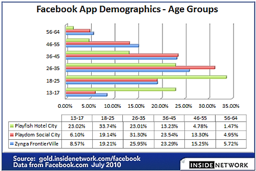 从玩家的年龄构成来看,Social City和FrontierVille两个游戏有一半左右的玩家年龄介于26至45岁之间。另外,GigaOm报道称,最常见的社交游戏玩家是43岁左右的女性。同时,滑铁卢大学的一项研究显示,老虎机玩家的平均年龄是39-45岁,这与社交游戏玩家的群体构成存在较大重叠。