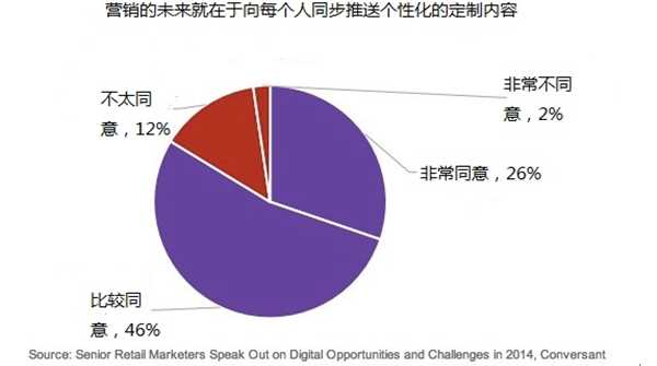 - 26%的受访者强烈赞同“营销的未来是为每个人定制个性化内容并同步推送”的观点
