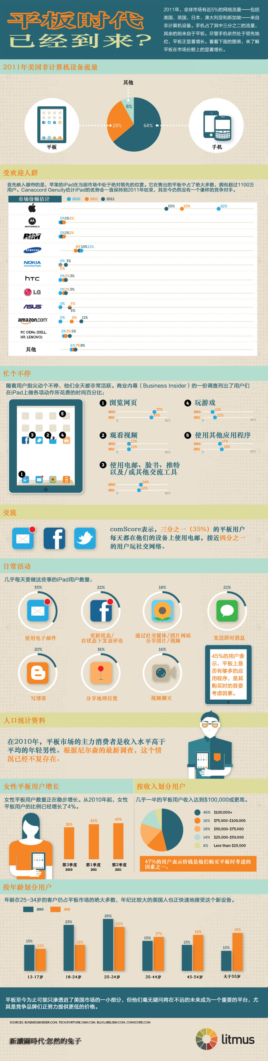 Litmus:平板电脑时代已经到来?–数据信息图 更多阅读:Litmus:关于平板产品的现状–数据信息图Litmus:2021年电子邮件报告Litmus:2021年电子邮件参与报告平板电脑将取代PC–中文版–数据信息图Digital Future and Bovitz:25%的电脑用户表示平板足以满足日常的生活需求–数据信息图Netbiscuits:2012年全球平板电脑数据研究 –信息图NPD Group:平板电脑正在慢慢的取代台式机–数据信息图平板电脑与电子商务–数据信息图iPad对儿童生活的影响–数据信息图Telmetrics&xAd:智能手机用户和平板电脑用户研究–数据信息图2013年中国平板电脑用户使用行为大调查–信息图工作中平板电脑的使用情况–数据信息图Millward Brown:2013年平板电脑媒介价值与广告效果研究pocketgamer:数据解读平板电脑市场发展迅速–数据信息图信息图:美国平板电脑出版物行业概况