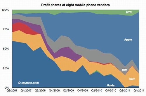 市场分析公司Asymco分析师公布一份季度评估报告,与手机利润有关,对于苹果来说是好事,但对于其它企业来说是坏事。