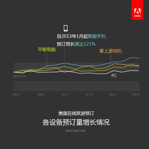 该报告基于2012年至2014年Adobe Analytics品牌网站的用户数据(注:Adobe为CMO.com母公司),数据来源于全球各大旅游行业网站的匿名汇总信息。这些样本信息包括1300个知名旅游网站的330亿余次访问。