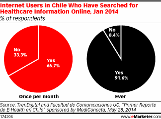 智利互联网用户使用数字媒体搜索医疗信息。2014年2月,有TrenDigital实施的研究发现超过在智利十分之九的互联网用至少使用互联网搜索过一次医疗信息。有三分之二的受访者称每个月至少搜索一次。