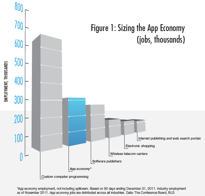 TechNet:APP为美国创造了46.6万个工作机会 根据TechNet的研究,你正在手机里玩的App正在创造新的工作机会和经济。根据该调查,自2007年以来,APP经济已经为美国创造了466000个工作机会(直接工作机会为310800)。 更多阅读:DCCI:App向何方移动,正在发生的8个转变Adobe:APP对品牌更具价值,但同样不能忽略移动网页信息图:全球化的移动应用商机友盟:2014年垂直领域移动 App竞争白热化年度报告信息图:手机应用程序的发展Distimo:苹果应用商店TOP25,需要多少日下载量distimo:APP国际化,多语言版本Google:全球智能手机用户平均安装26个APPSensor Tower:2021年Q3用户在移动应用上花费近340亿美元Distimo:移动APP游戏市场淘金前景–数据信息视图CAMIA:2018年2季度泰国各类app排行情况soasta:84%的人早上起来使用APPFlurry:游戏主导移动APP 独立开发商占主导Flurry:电技术,应用程序和新的地球村Flurry:图片和视频类应用成最快增长分类