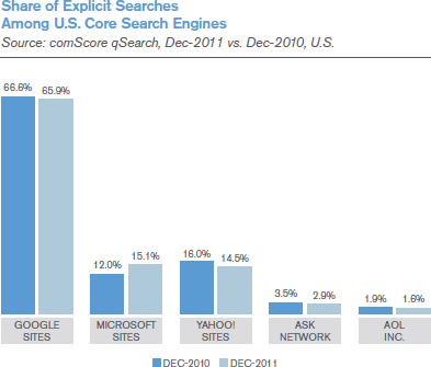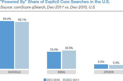- 尽管美国搜索市场,谷歌仍然一家独大,但值得关注的是Bing超越了yahoo,成为第二大搜索引擎。