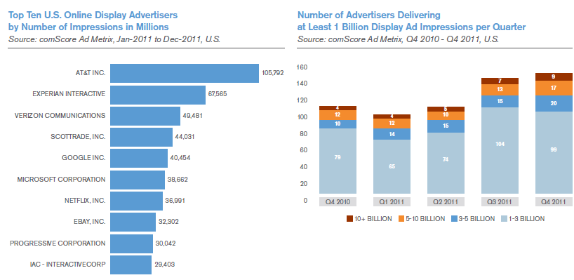 - 2011年,随着品牌广告预算的数字化转移,美国展示广告展示量高达4.8万亿