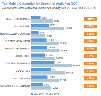comScore发布了最新的2012年美国数字生态趋势报告,涉及社交网络、搜索、网络视频、广告、移动和电子商务等领域,下面是报告的关键要点:
