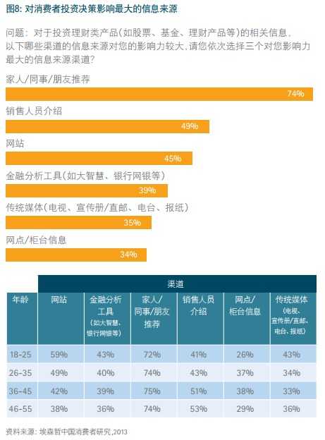 洞察之三:社交的力量。埃森哲连续几年的全球消费者调研显示,口碑对中国消费者的营销异常重要,其作用远远大于其他渠道。中国消费者非常信赖源自人际社交网络中的有关消费体验的信息,这也在其银行业务决策中起到重要作用。
