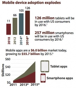 - 2016年移动花销将达到1.3万亿元,占科技经济的35%,app市场将在2015年创造560亿的市场。