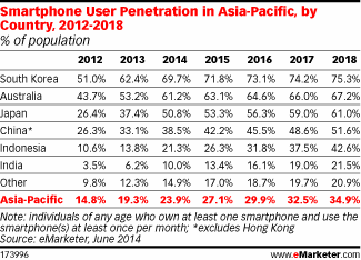 199IT编译自//www.emarketer.com/Article/Asia-Pacific-Emerging-Markets-Grab-Highest-Smartphone-User-Shares/1010938/7