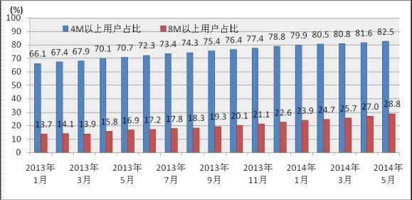图3. 2013-2014年互联网宽带接入8M以上用户占比情况