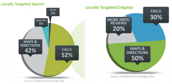 本地展示广告:地图和导航(50%)、 拨打电话(30%)、更多信息和评论(20%)
