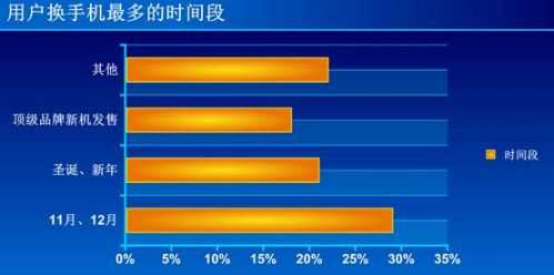 据调查数据显示,手机更换高峰出现在下半年,主要集中于双11、圣诞节、新年等节日期间,此时也正值手机等商品促销期;同时,秋季手机新品发布也已完成,大量新品手机与手机促销结合,造就了手机用户换机潮。用户换机的目标价位为2500元,《报告》数据显示,1500~2000元价位的购机预算占比为32%.此外,广东的用户手机换的最勤快,这得益于该地区的经济比较发达,消费能力较强。