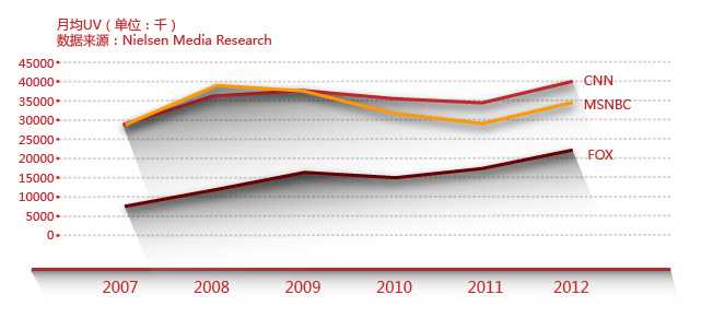 但是你不能说 CNN 输给了 FOX,就是严肃输给了调侃,对于广告商来说,绝对收视率是有意义的。