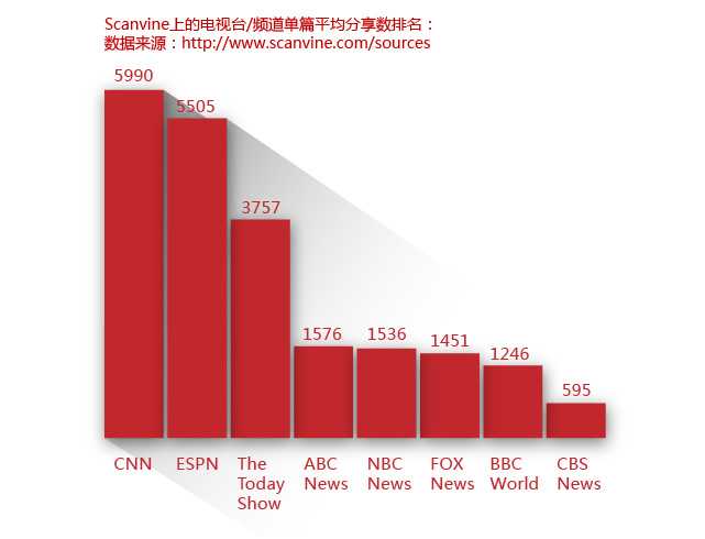 据其统计,CNN 在新媒体领域极为活跃,迄今为止在网络上的单篇文章分享数平均在 6000 左右,排名第四。单篇文章分享量居首的迪士尼新媒体网站 Oh My Disney 则高达 15301 次。