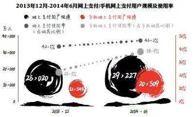 移动支付成为2014上半年网络应用发展亮点。CNNIC统计数据显示,截至2014年6月底,中国移动支付用户从2013年底的1.25亿人增至2.05亿人,增长率达63.4%,使用率从25.1%增至38.9%。移动购物用户规模也随之增长,手机购物用户从1.44亿人增至2.05亿人,增长高达42.0%。移动支付推动O2O交易,并实现与线下商务紧密结合,已经成为公认的发展趋势。