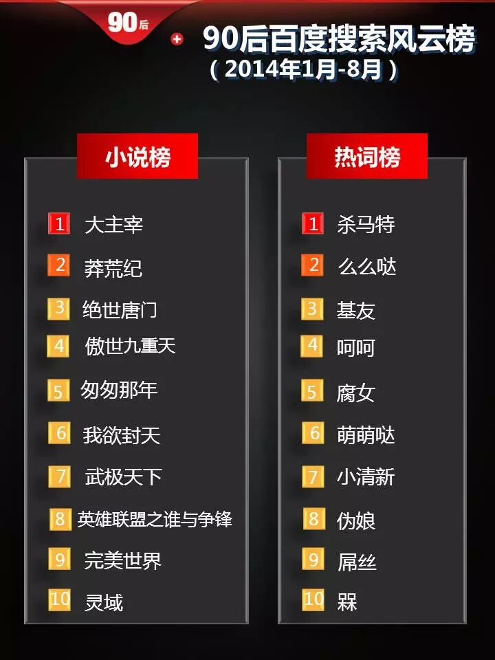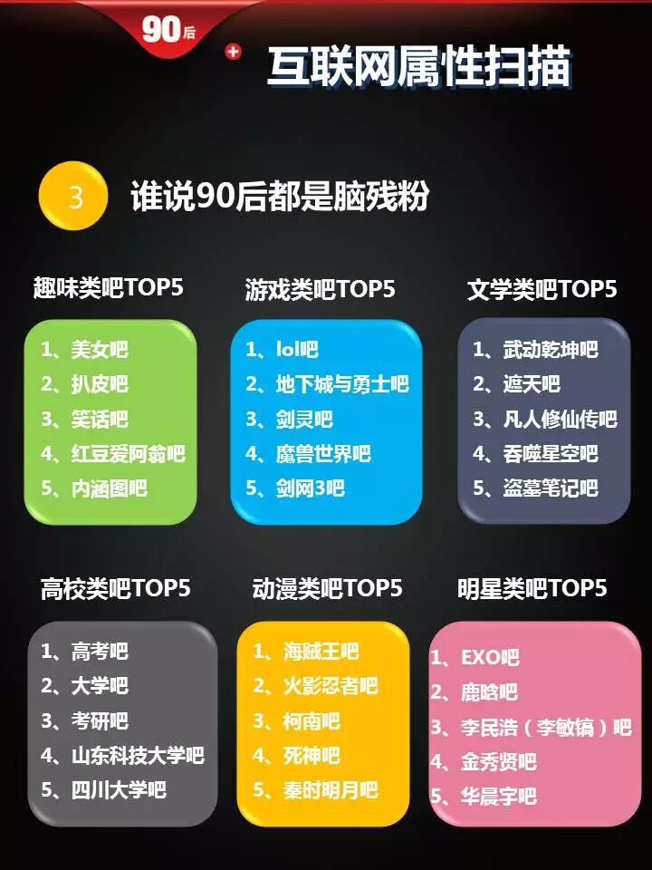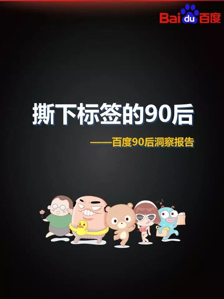 在百度CBG(用户消费业务群组)的用户中,90后占到了60%以上。因此,百度CBG联合百度数据研究中心,结合百度贴吧、百度音乐、百度视频、百度游戏、百度搜索指数、百度搜索风云榜等产品数据,以及7000位贴吧吧友参与的“90后五观调查” 结果,研究撰写了此份《百度90后洞察报告》。