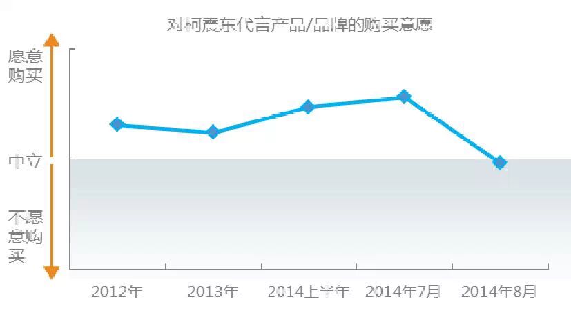 近年来,尽管消费者对柯震东代言产品或品牌的购买意愿几乎逐年升高,并在今年7月达到顶峰。