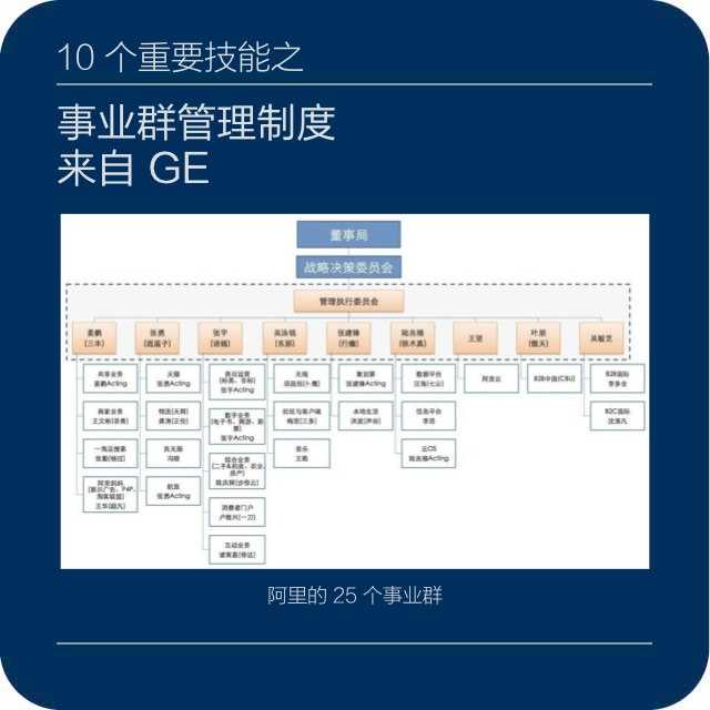 出于事业部制的推崇,马云对公司内部的管理体制进行了多次调整实践,从将原淘宝网拆分为淘宝网、天猫及一淘网 3 家独立公司,到由 3 个独立公司调整至 7 大事业群,最后又拆分至 25 个事业部,马云在阿里内部实践的事业群概念对阿里巴巴的发展产生了很大的影响。